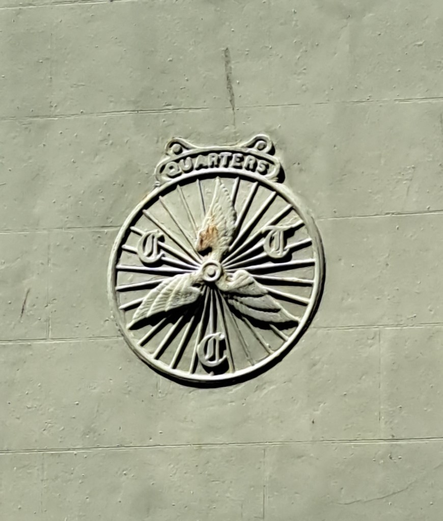 A little further down is The Wheatsheaf Hotel. On their wall at first floor level is this plaque. The Winged Wheel emblem belongs to the Cyclists Touring Club. There is a similar plaque at 54A Carisbrooke High Street. This article explains the history of the Winged Wheel.