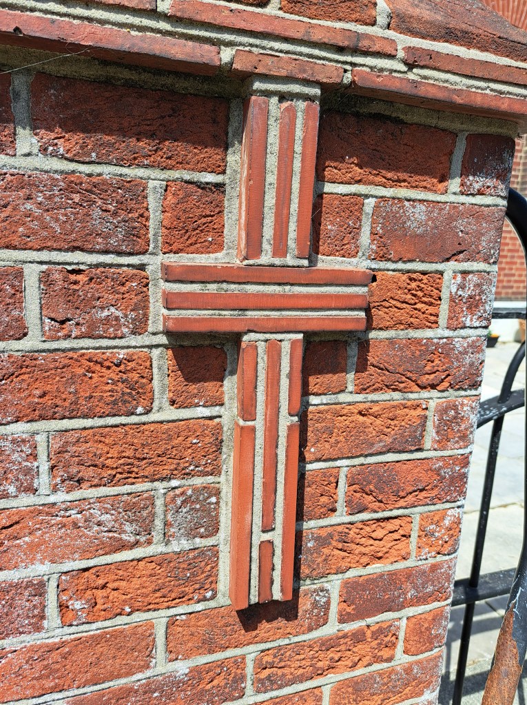 At the entrance to St Thomas of Canterbury Catholic Church, some slates have been used to mark out a cross.